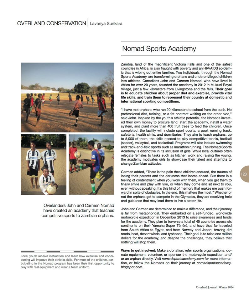 Nomad Sports Academy Zambia Orphans Article